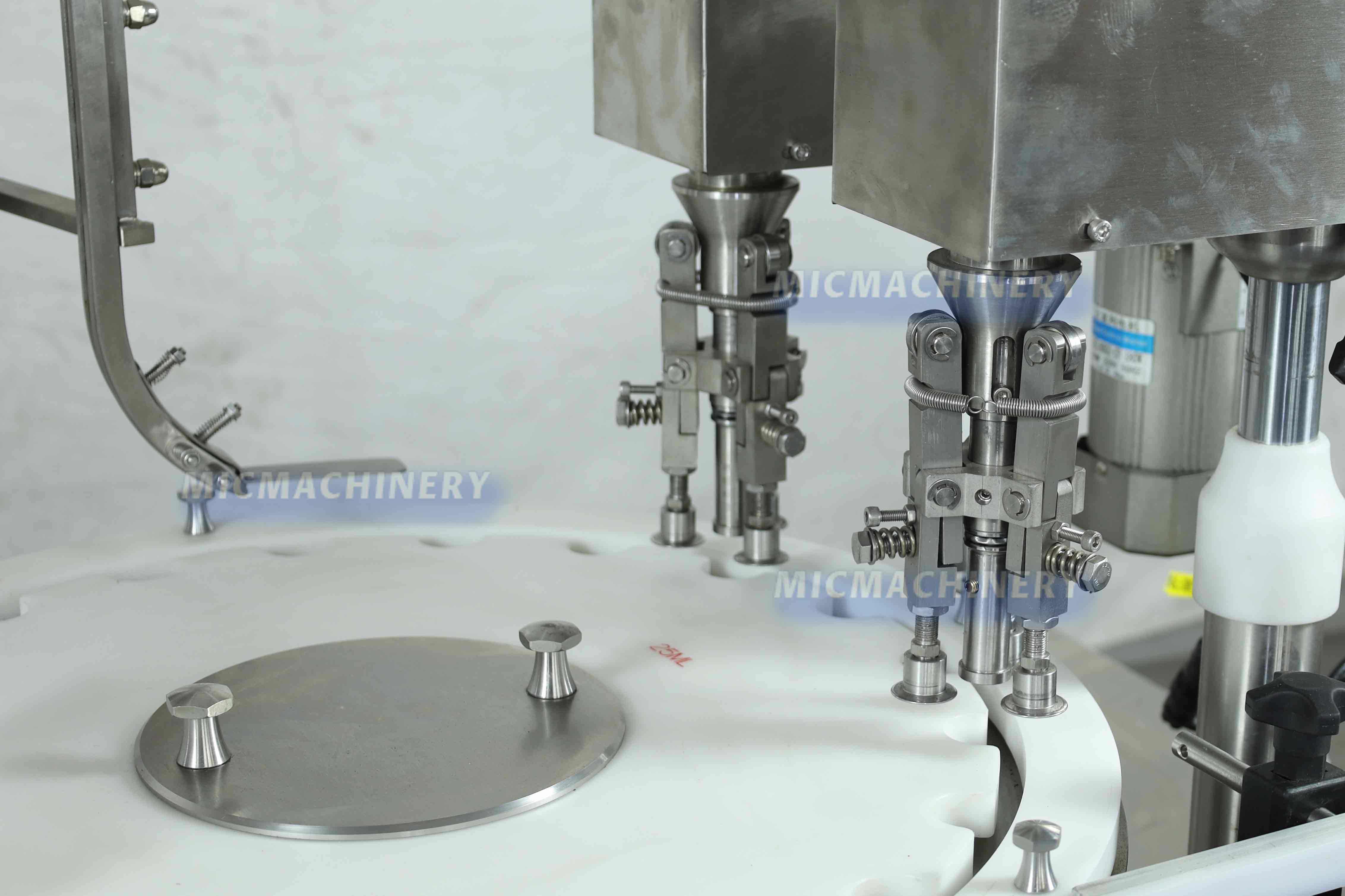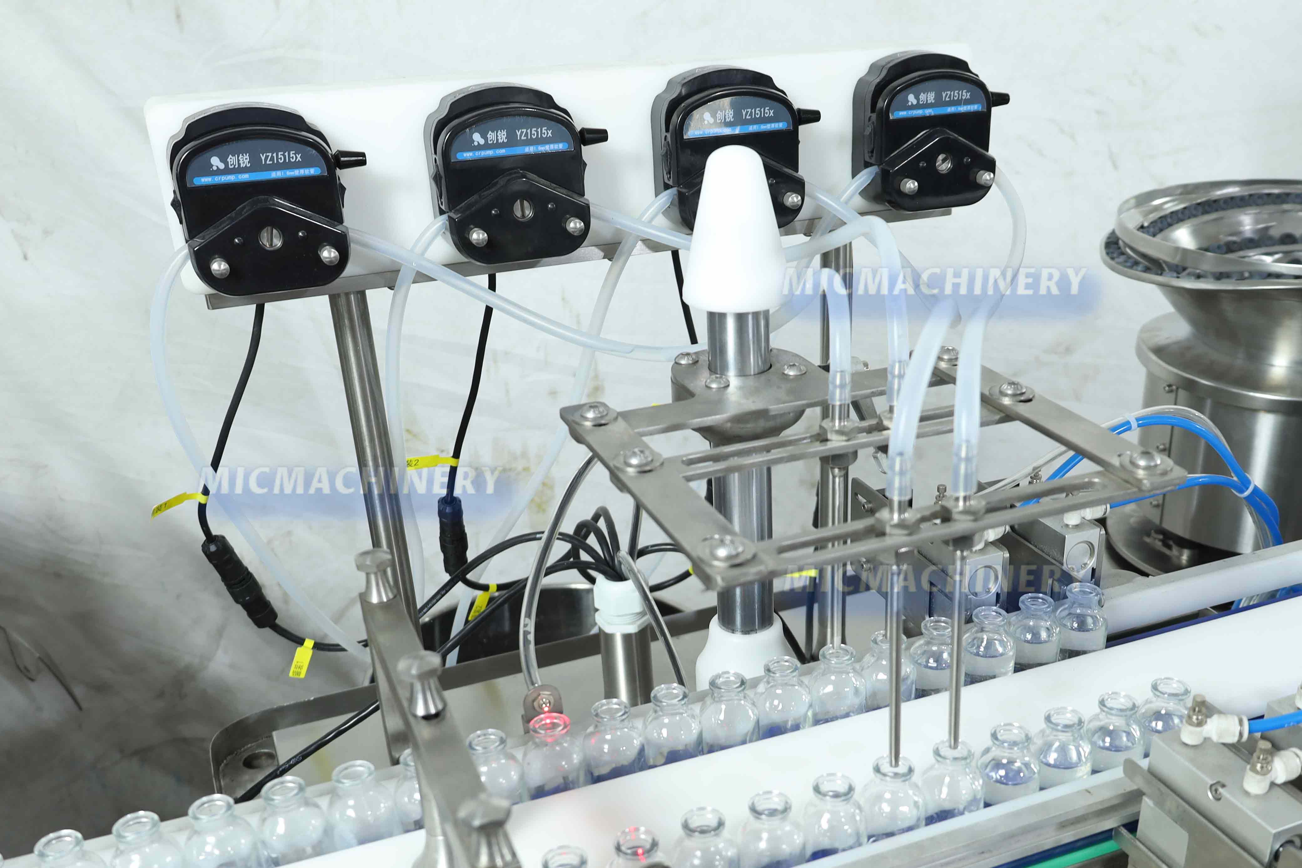 - Dual Filling Heads: The Double-head linear filling machine for vials operates two filling heads simultaneously, increasing throughput and ensuring precise volume control.