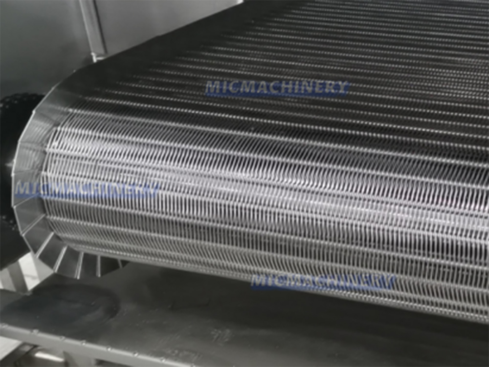 · Stainless steel mesh conveyor with stepless speed adjustment for smooth transport