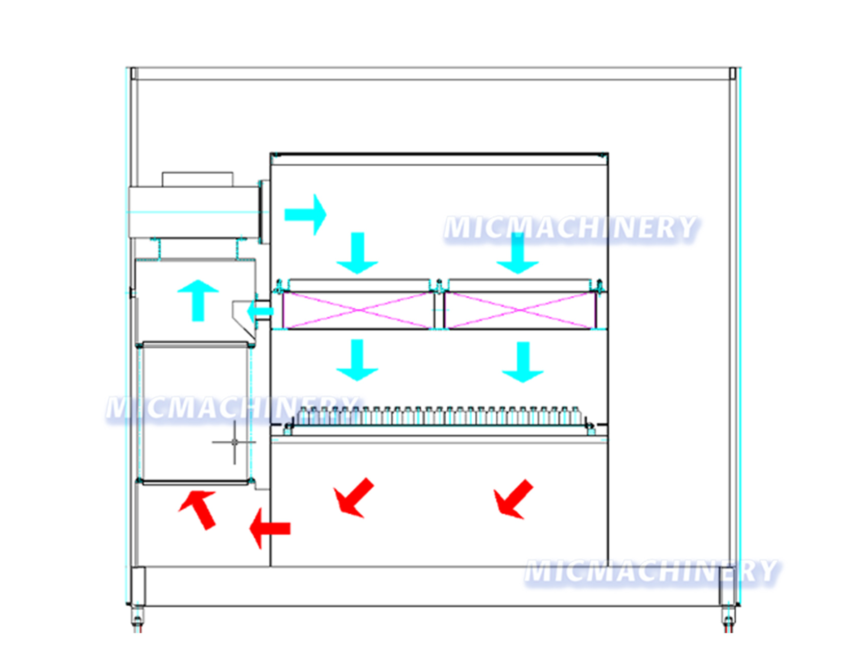 · Hot air circulation system using stainless steel heating tubes for uniform sterilization