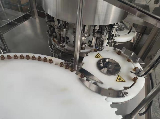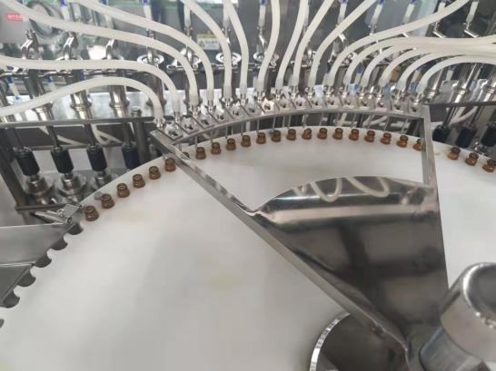 The filling needle is synchronously tracked and inserted into the bottle for liquid filling |