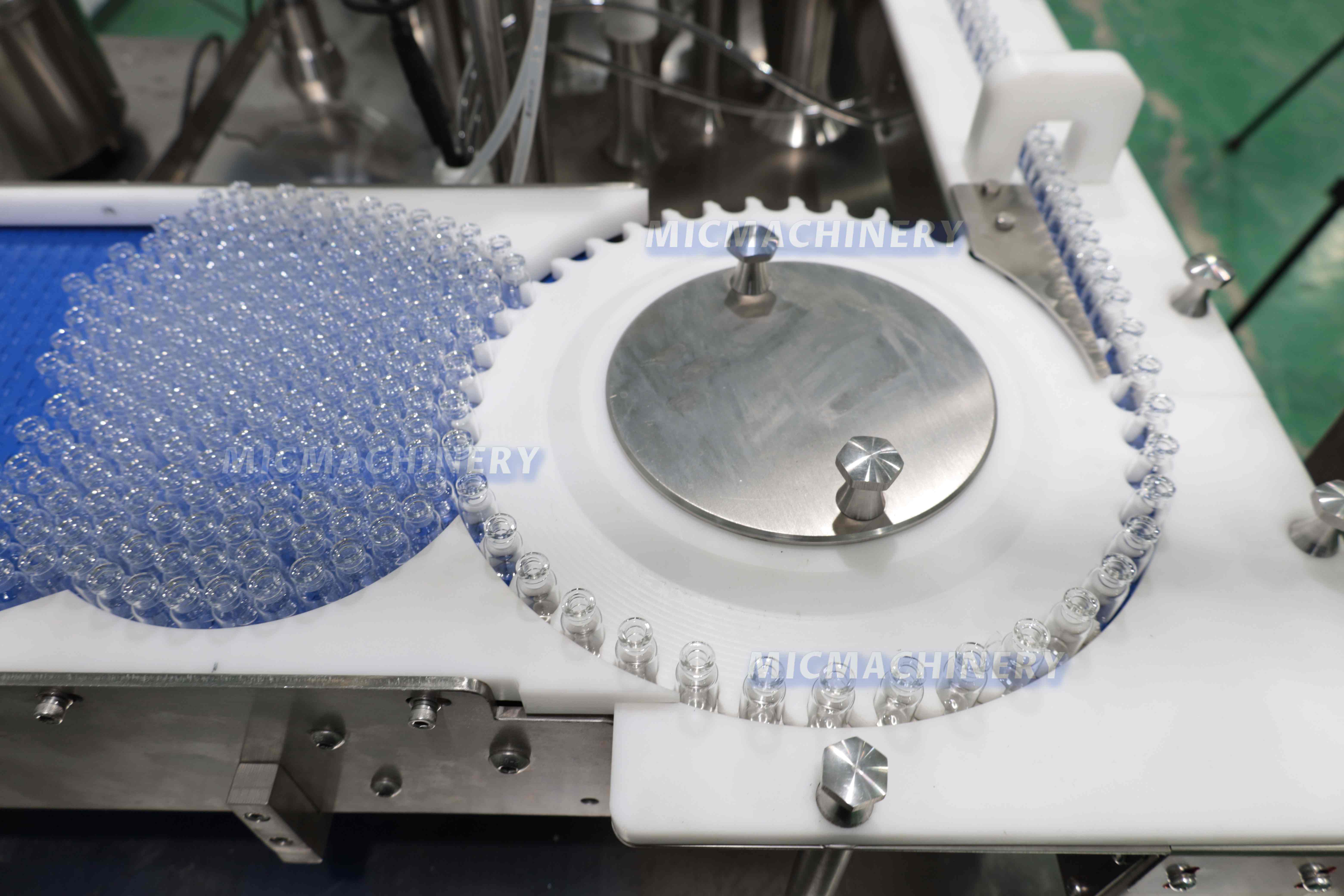 Vial Feeding: Empty vials are automatically aligned and transported to the filling station.